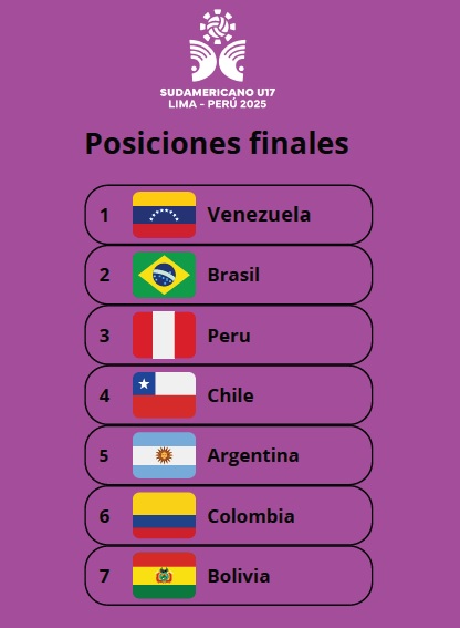 Con esta victoria, Venezuela no solo se consagra como campeón sudamericano de la categoría U17, sino que también celebra su primer título en las competiciones continentales de 2025 y de su historia.