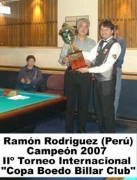 De otro lado en la última parada mundial Ramón Rodríguez, clasificó hasta las semifinales de la Copa del Mundo realizada en la ciudad de Suwon, Corea del Sur, luego de superar en cuartos de final al holandés Dick Jaspers por 3-1 con parciales de 15-1, 7-15, 15-4 y 15-7, triunfo muy importante para el billarista peruano debido a que semanas atrás en el campeonato mundial ecuatoriano compartió honores con el ex campeón europeo y mundial, además fue la primera vez que consiguió el promedio general de 1.640.