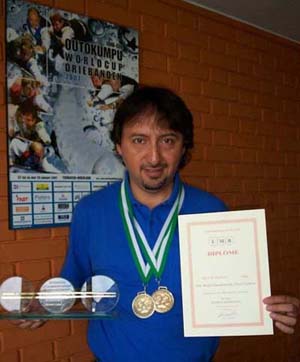 En semifinales rivalizó con Daniel Sánchez (España), número tres del ranking mundial, con quien perdió 0-3 (1-15, 8-15 y 11-15), ubicándose tercero junto al holandes Dick Jaspers. El mundial fue ganado por el japonés Ryuuji Umeda, seguido por Daniel Sánchez.
