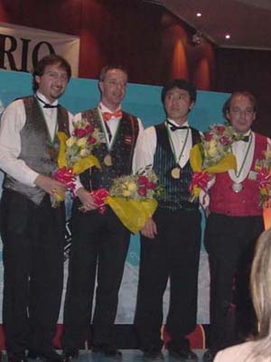 Sí, bueno, lo que dices sobre la primera medalla, felizmente se hizo realidad gracias a un reclamo que yo planteé al Presidente de la Confederación, hasta el año pasado, Víctor Robayo. Se hizo el reclamo ante la Unión Mundial y ellos aceptaron el error y procedieron a hacerme entrega de la medalla de bronce, con el diploma correspondiente. Tengo dos medallas que me van haciendo notar que en esta década, me estoy poniendo más sólido como jugador, más asentado, a veces las estadísticas, lo hacen sentir a uno como que esta consiguiendo cosas importantes no-solo para Perú, sino que en los seis últimos mundiales Latinoamérica solamente se ha subido dos veces a un podio mundial y me ha tocado la suerte de ser yo quien lo haga dos veces y la edad también que tengo 40 años. Muchos especialistas en el billar afirman que la mejor edad para un billarista, para alcanzar su madurez en todos los sentidos es justamente entre cuarenta y cincuenta, y entro a esta etapa junto con una medalla y me siento muy motivado. Lo estaba ya antes de la partida en la semifinal del mundial, yo estaba con mucha fe que iba llegar a la final, no me importaba quien estuviese al frente pero bueno son cosas circunstanciales las que se presentan.